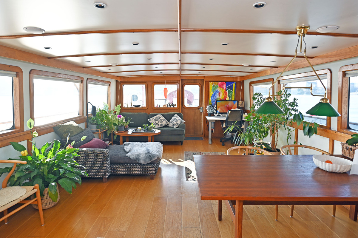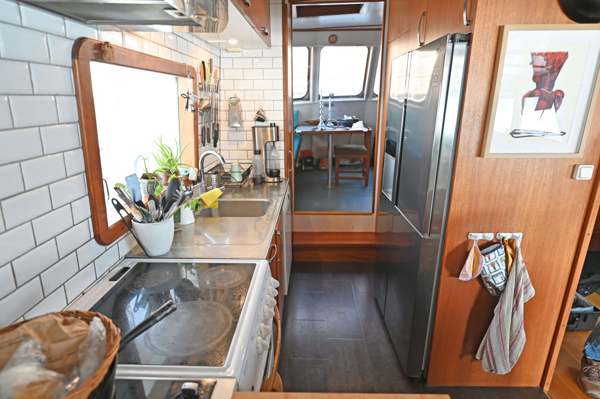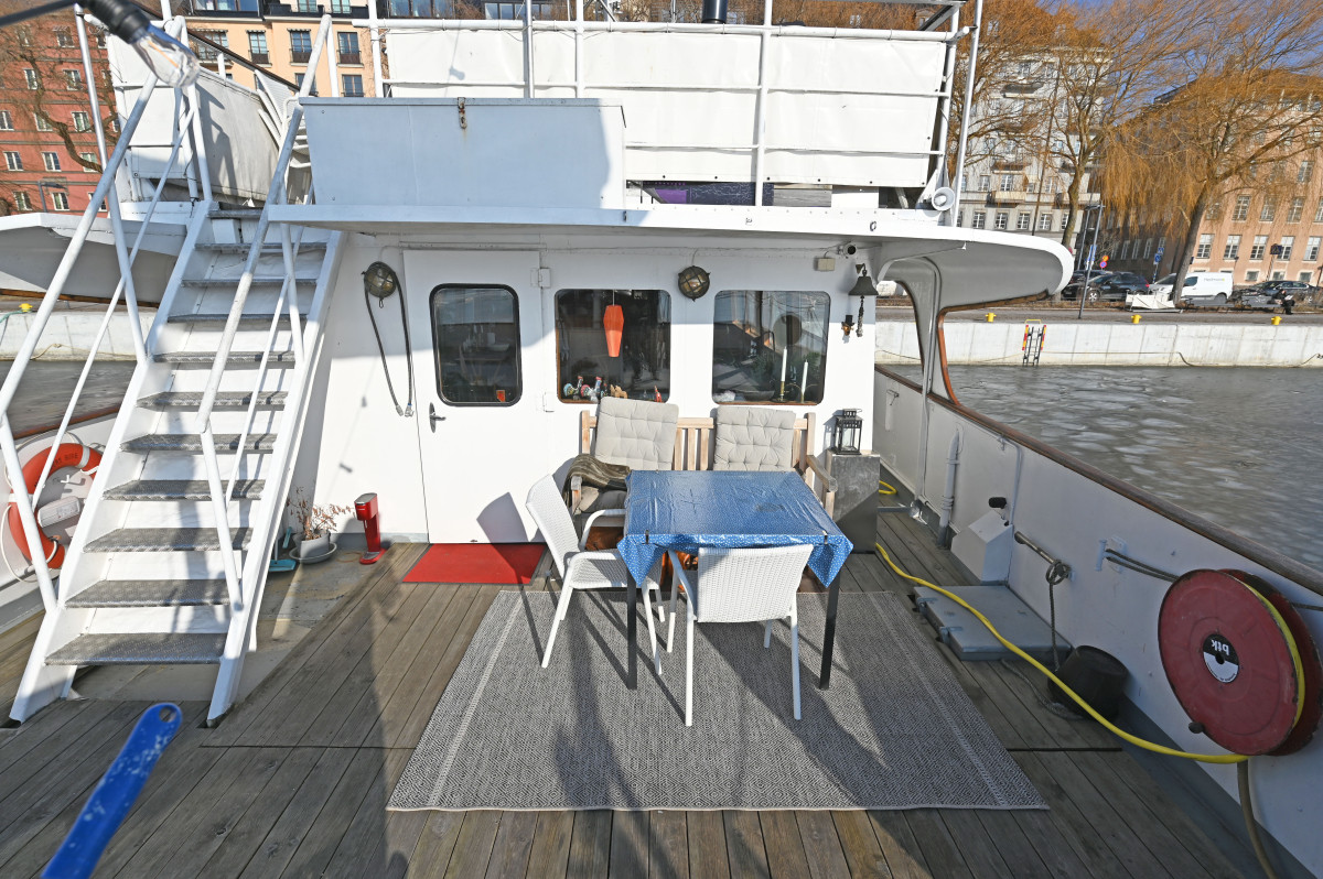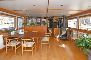 On board there are several social areas both on deck and below deck, including a spacious sun deck with seating area as well as a large main saloon with fireplace and direct access to the aft deck. The vessel is also fitted with a fully equipped galley and several seating areas for dining and socialising. Below deck there are generous accommodation spaces with several cabins, storage rooms, a bathroom with bathtub as well as a saloon, providing good comfort for extended stays on board as well as for larger parties.