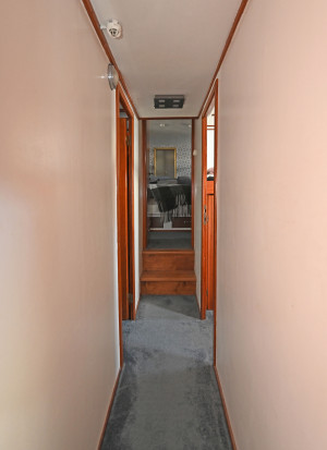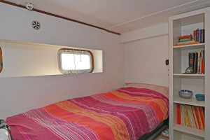 Salong under däck med toalett med dusch och bad samt 2 hytter i akterdelen. Ytterligare en hytt samt förråd i korridor samt en kaptenshytt med toalett i fören.