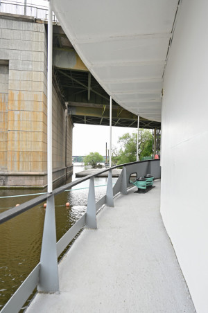 Nedre däck används idag främst som ett konstgalleri. Med separat ingång via huvuddäck kan galleriets gäster komma ner i det drygt 100 kvm stora rummet utan att behöva gå in via salongen på huvuddäck. Galleriet får ett naturligt ljus via de stora glaslanterninerna i taket. Akterut finns både gästtoalett, kontors- och förrådsdel samt teknikrum.