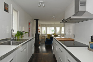 Ljus salong med utsikt över Hornstull. Matplats med braskamin. Modernt och välutrustat kök. Akter om köket finns ytterligare ett rum/kontor. Toalett med dusch och vattenburen golvvärme. Samtliga däcksplan sammanbinds av en spiraltrappa.